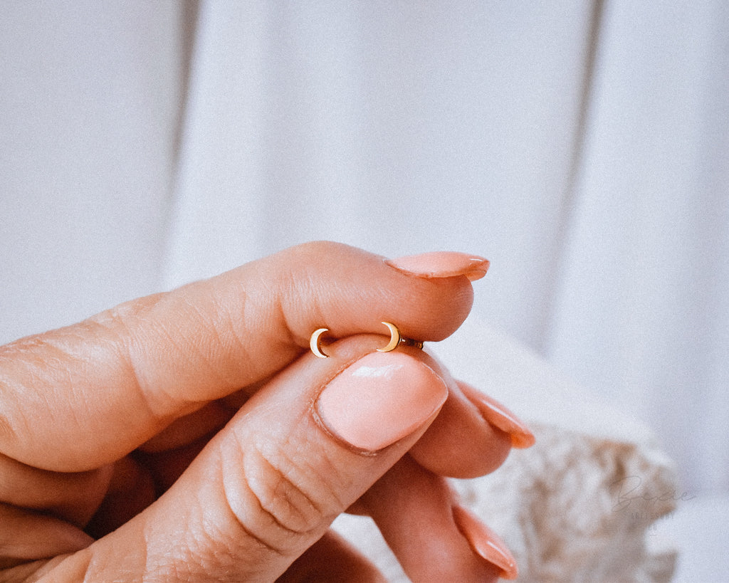 Luna moon stud earrings Gold or Silver