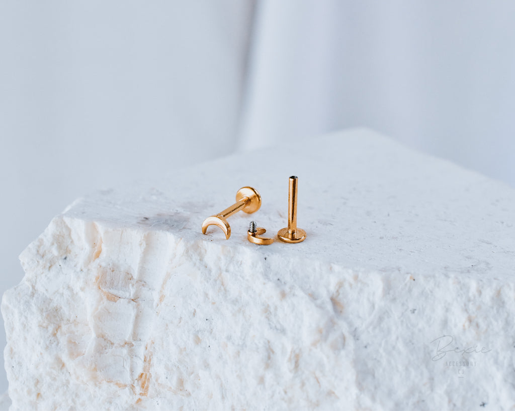 • Threaded (screw-on) labret flat back post for comfort and security