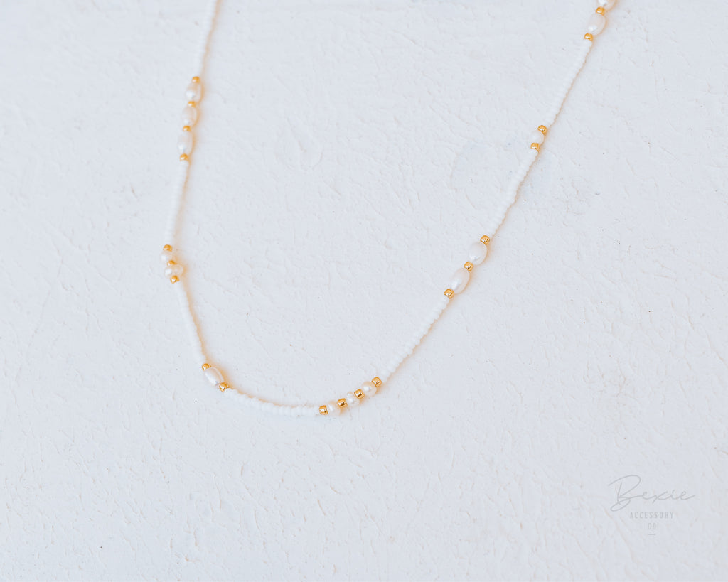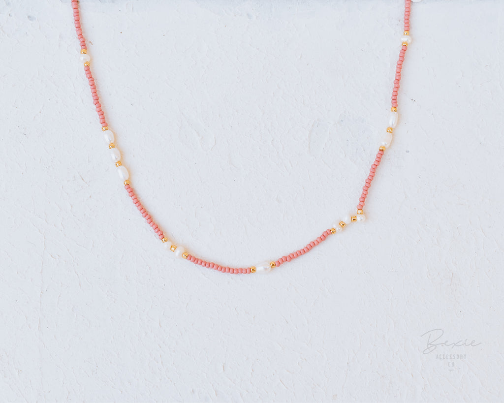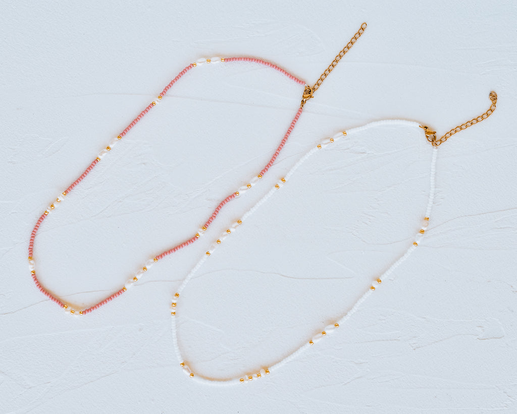 Mira pearl bead necklace Pink or White