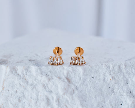 Tarnish resistant and water safe, our range of 18k gold plated surgical steel flat back stud earrings are perfect for the busy woman on the go. Beautiful, durable, low maintenance jewels that you can wear and forget. Wear it while you swim, shower, exercise or go about your day, confidently knowing that your jewellery will stay sparkling no matter what life throws at you.